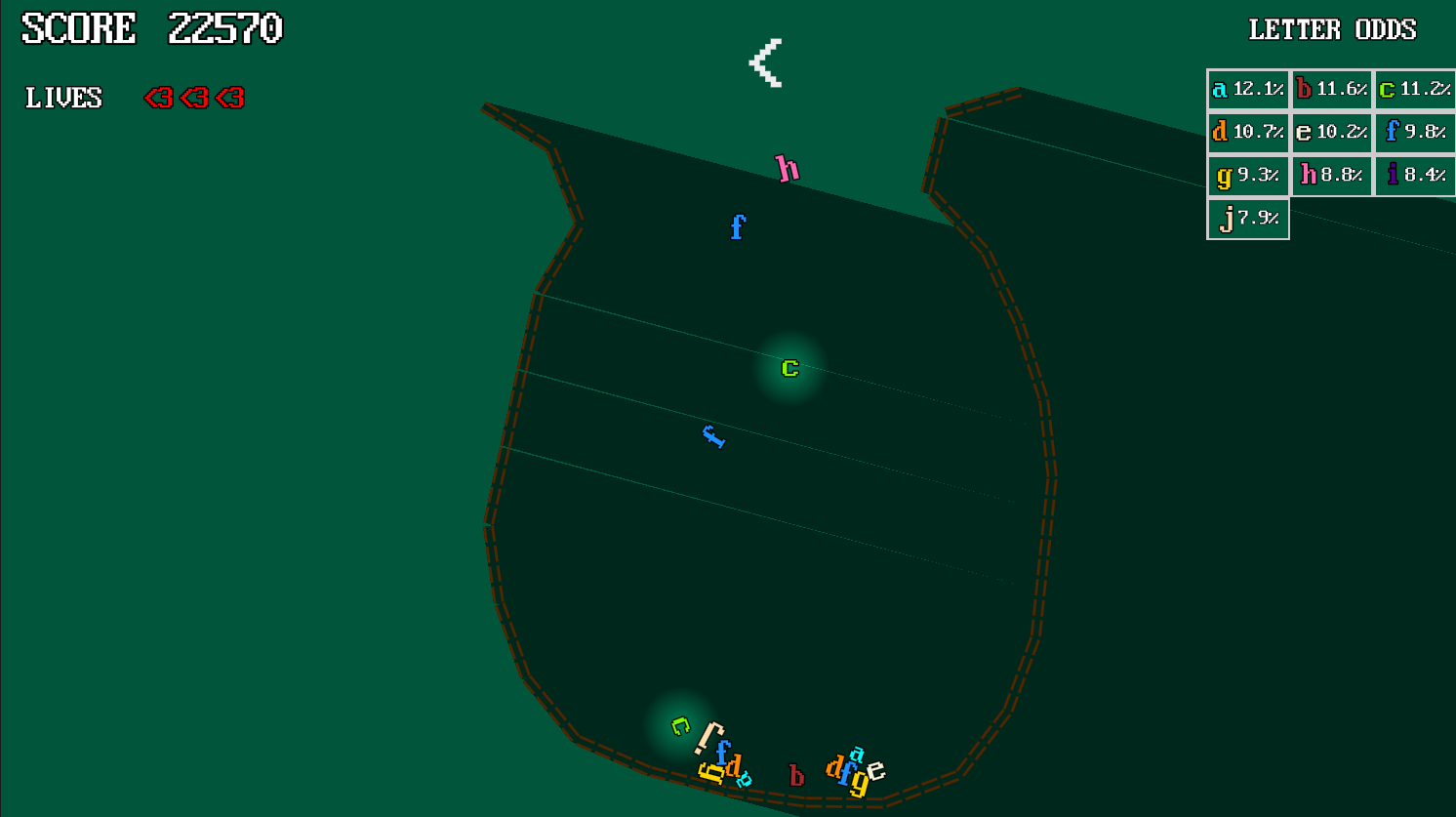 Drop letters to make matches! Matching two of the same letters merges them into the next letter in the alphabet. You lose a life if any letter falls offscreen. You lose the game when all lives are lost. Try to get the highest score you can!